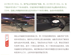 20**年02月15日,我司接受某產(chǎn)險公司委托,對其承保的蘇BXXXXX保時捷卡宴在20**年01月17日21時在甘肅省武威市天祝藏族自治縣行駛時避讓車輛導(dǎo)致標(biāo)的車撞墻一案進行調(diào)查。